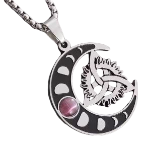 Aztec Mayan Solar Calendar Celtic Moon with Witch Knot Necklace Celtic Knot Moon Cross