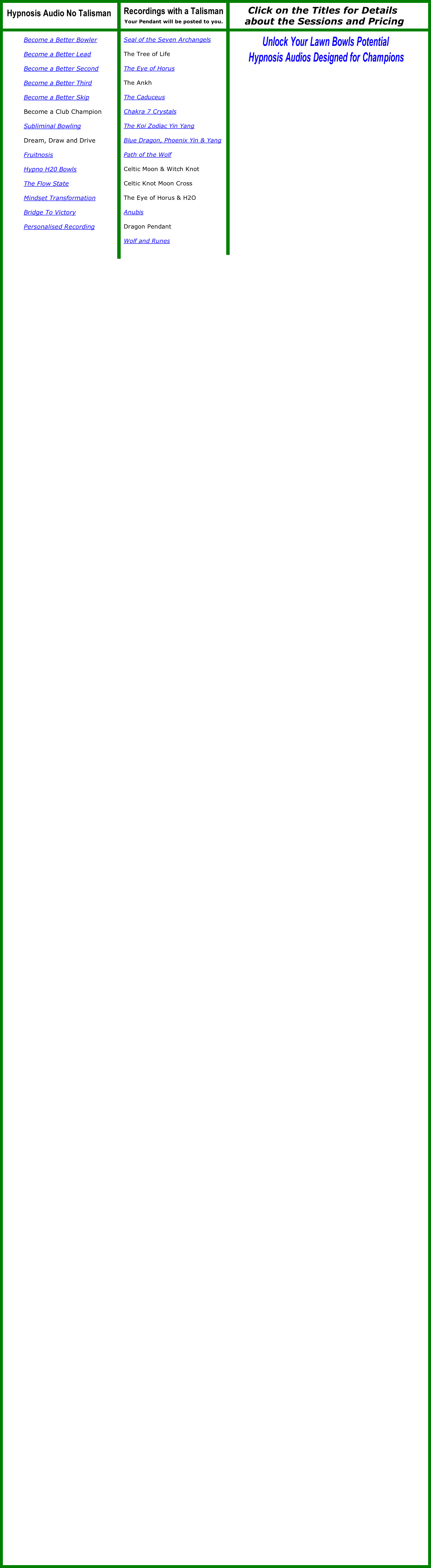 Transform your mindset, sharpen your focus, and elevate your lawn bowls performance with my exclusive collection of hypnosis audios.